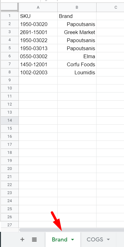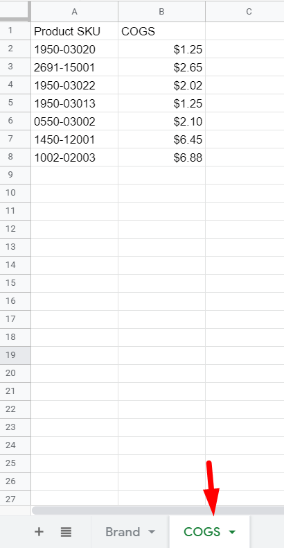 To include the product cost of goods sold, create a Google Sheet with this data: