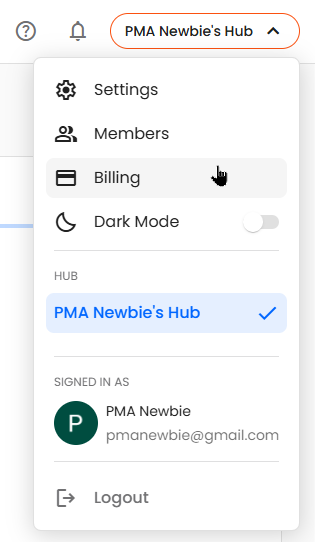 This article will show you how to change the credit card that is billed for your PMA subscription. To change the credit card being billed, go to your hub and click on the three dots in the upper-right corner. Select Billing. Scroll down to Billing ...