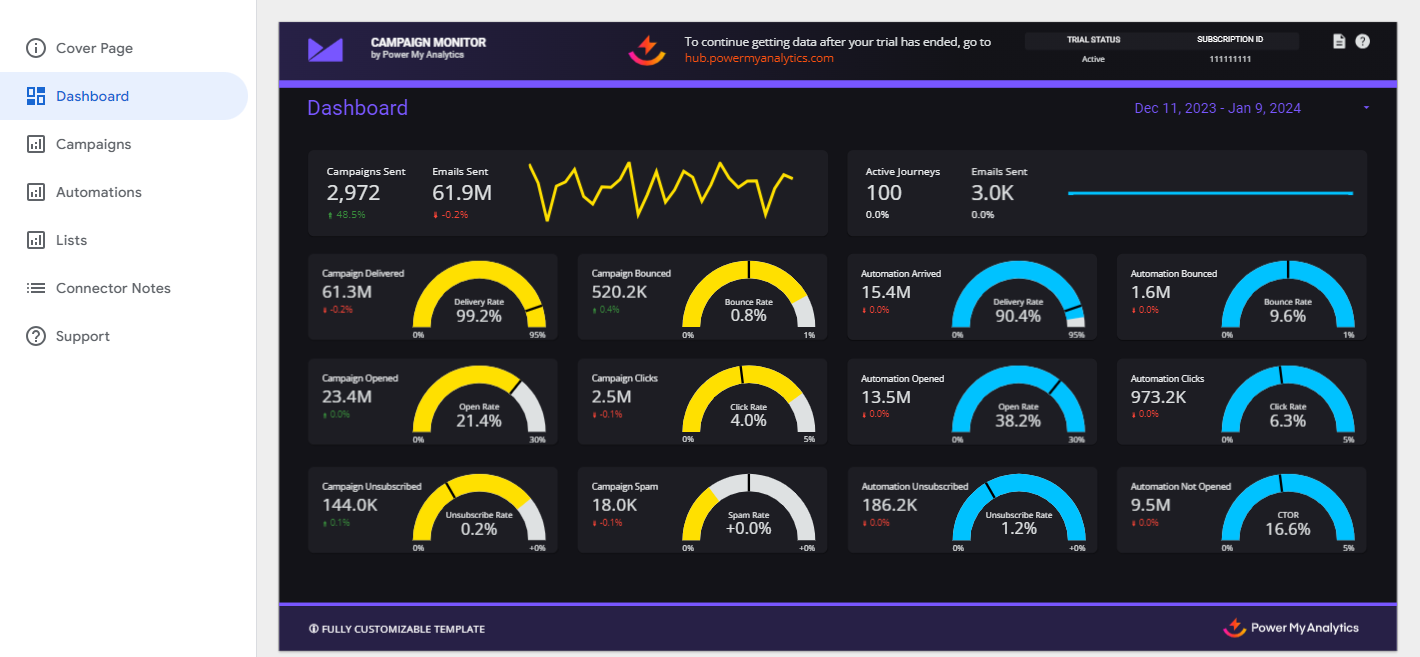 This guide will walk you through the process of setting up and using Campaign Monitor as a data source in Power My Analytics. Campaign Monitor is a powerful email marketing platform, and integrating it with PMA allows you to automate your data collection and create comprehensive reports. By following this guide, you'll be able to connect your Campaign Monitor account, set up reports in Looker Studio, and understand the key metrics and considerations for this data source.