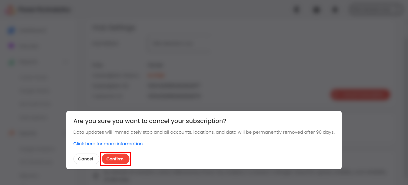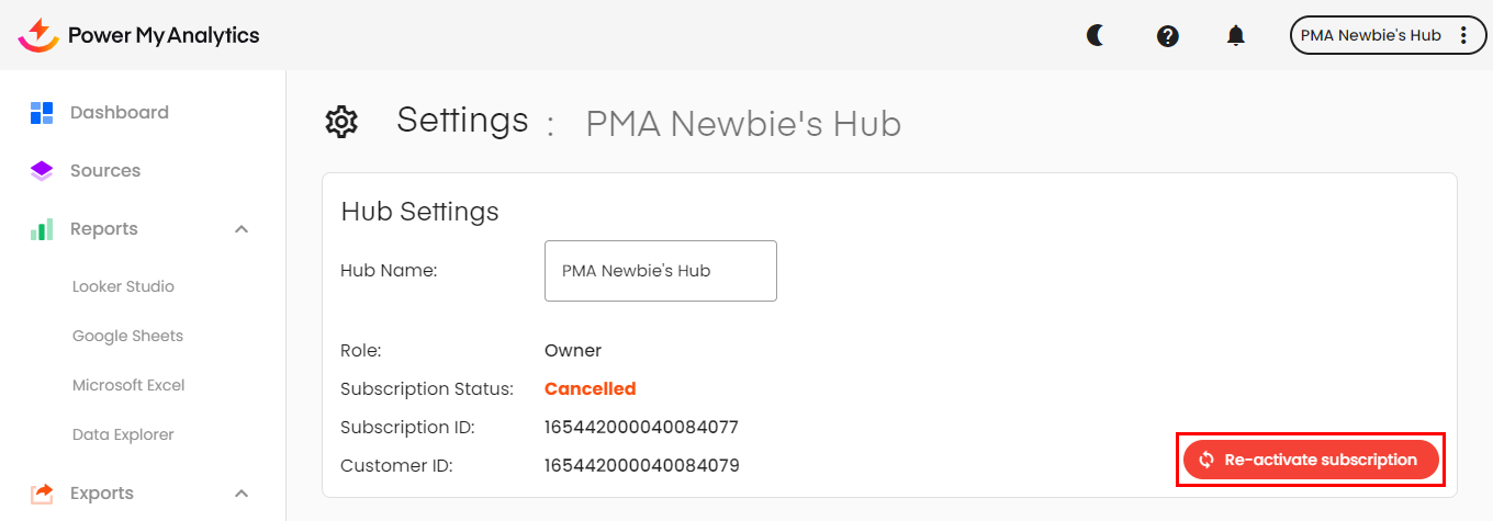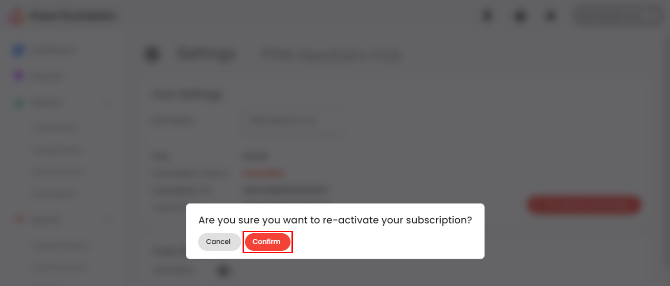 - Only a Hub Owner can cancel or re-activate a subscription.