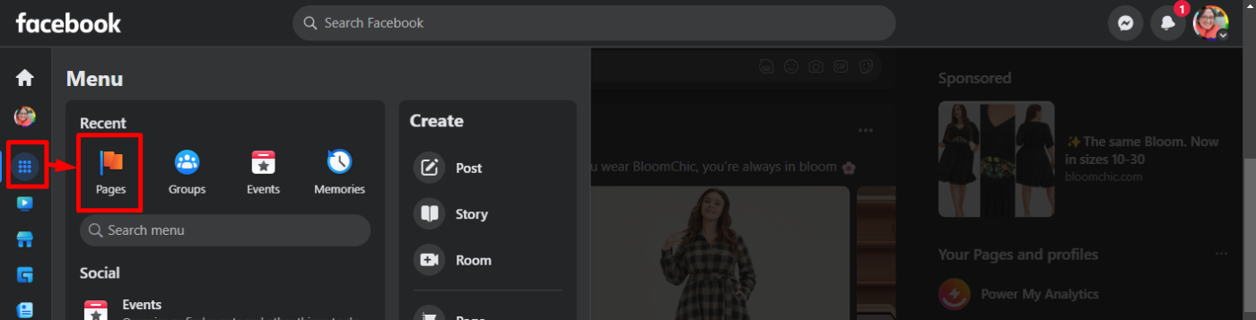 While logged in to the Facebook account attached to the Instagram account, click Pages in the left menu.