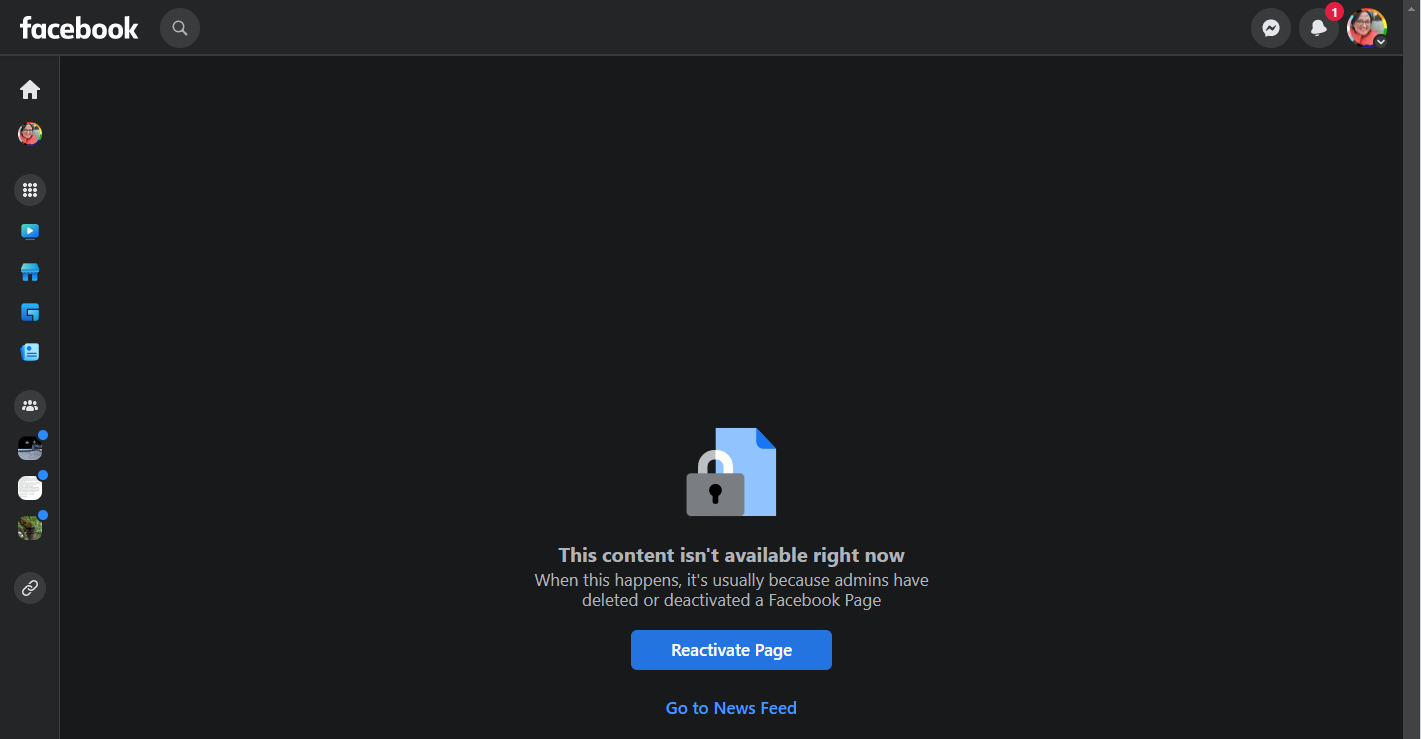 A Facebook page that has been unpublished or deactivated for any reason will need to be reactivated to create a successful connection. If the page does not appear in the Pages menu, it may have been unpublished.