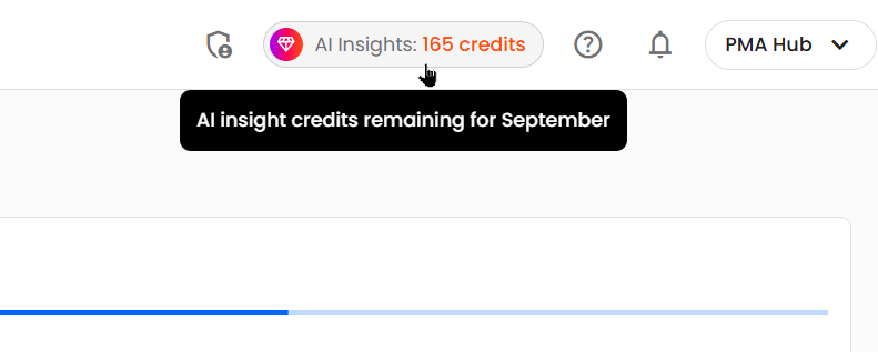 You can see how many AI Insights credits you have remaining for the month by viewing the “AI Insights” box on the upper menu of your PMA Hub: