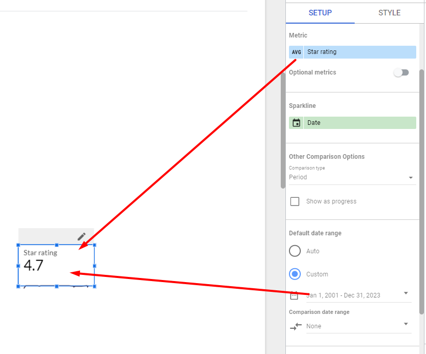 - Add a scorecard with the metric Star Rating. Set the metric's aggregation to "Average".
