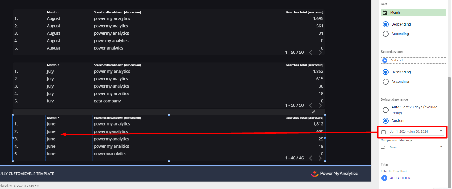 When you select multiple months in your reports, Google Business Profile data will be totaled across the entire period rather than providing granular month-by-month data. To view your data broken down by individual months, you'll need to create: