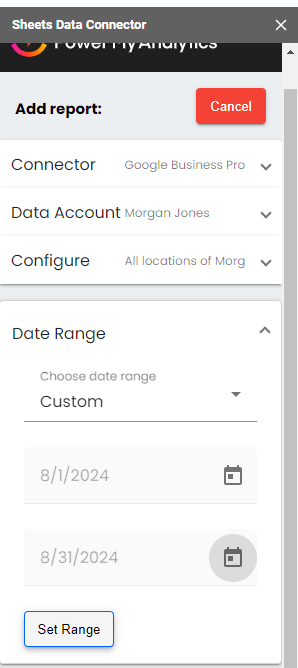 Note: When you select "All selected locations of [Account Name]", your report will automatically include only the business locations that are enabled in your Power My Analytics hub.