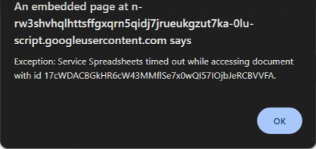 "Exception: Service Spreadsheets timed out when accessing document with id"