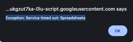 Google Sheets Error: "Exception: Service Timed Out: Spreadsheets" or "Service Spreadsheets timed out when accessing document"