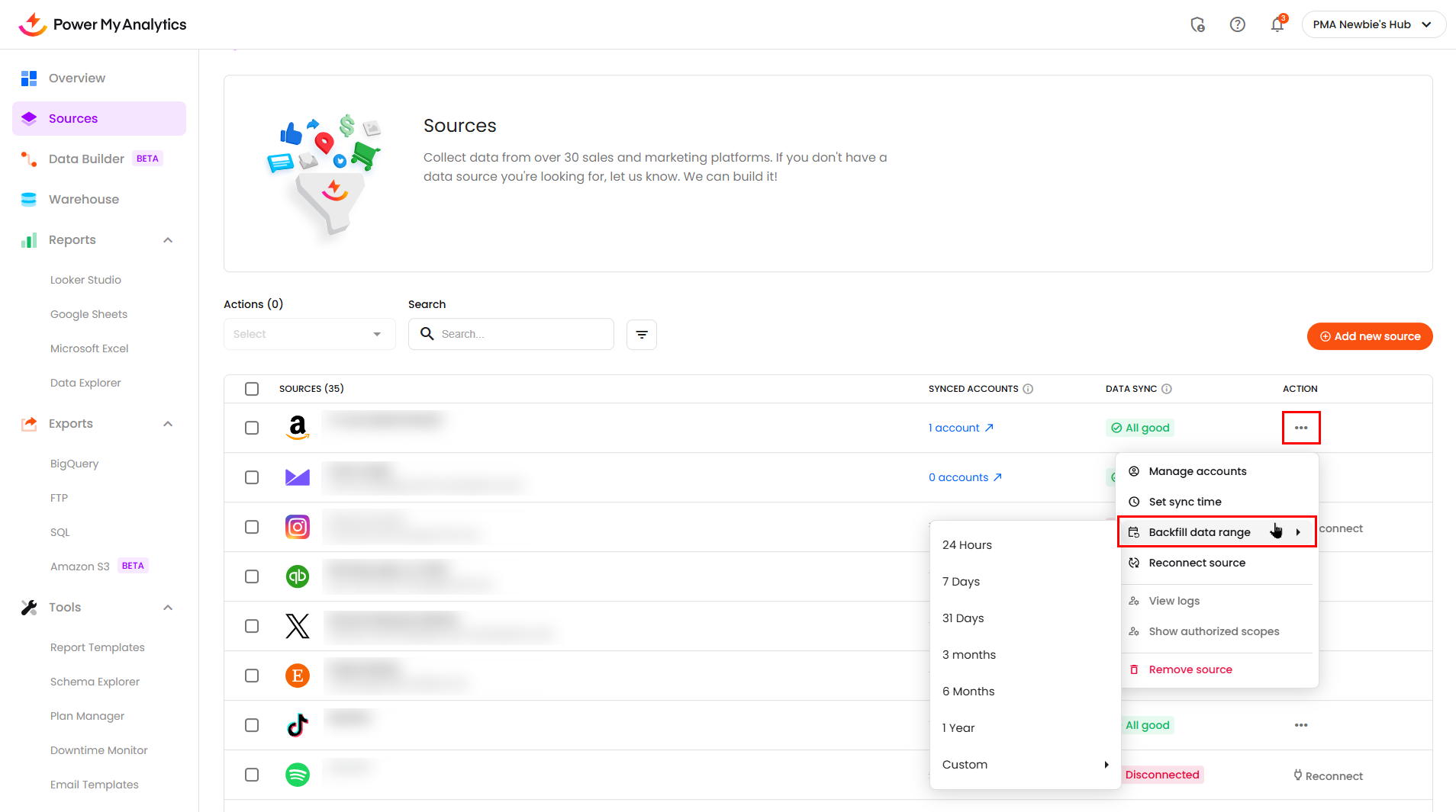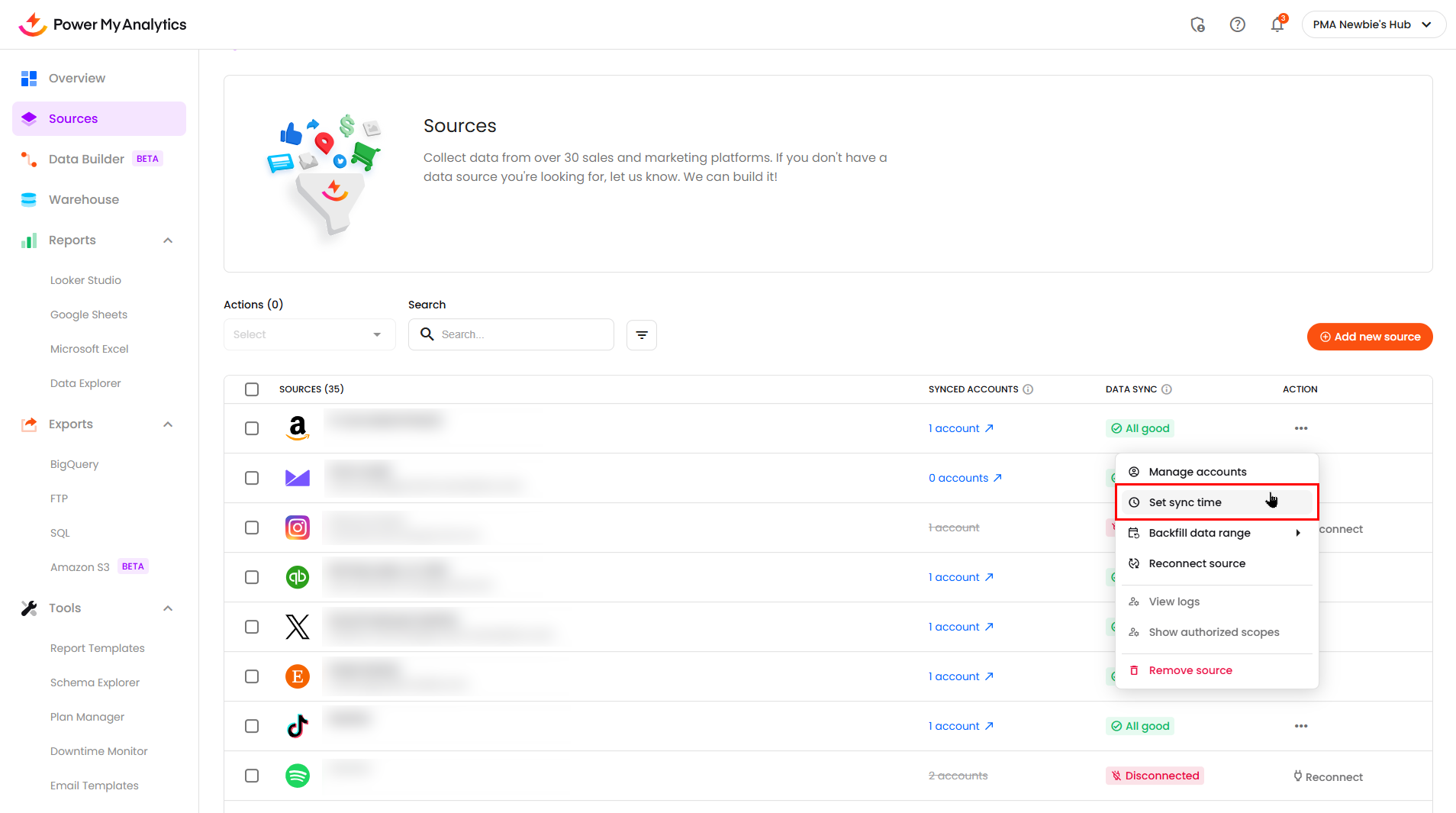 Power My Analytics has updated the Sources page to make it easier to view and manage your connected data sources. This article will guide you through the process of connecting a data source to Power My Analytics and managing your data source ...