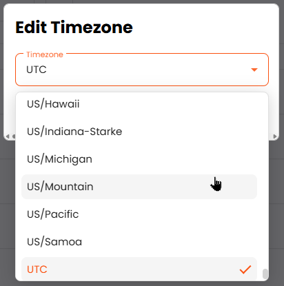 For most connectors, the time zone can be customized at the data source level or individual account level in Actions > Set sync time from the Sources table or in Manage Accounts > Set Sync Time. Choose a time zone from the dropdown under Edit Timezone.