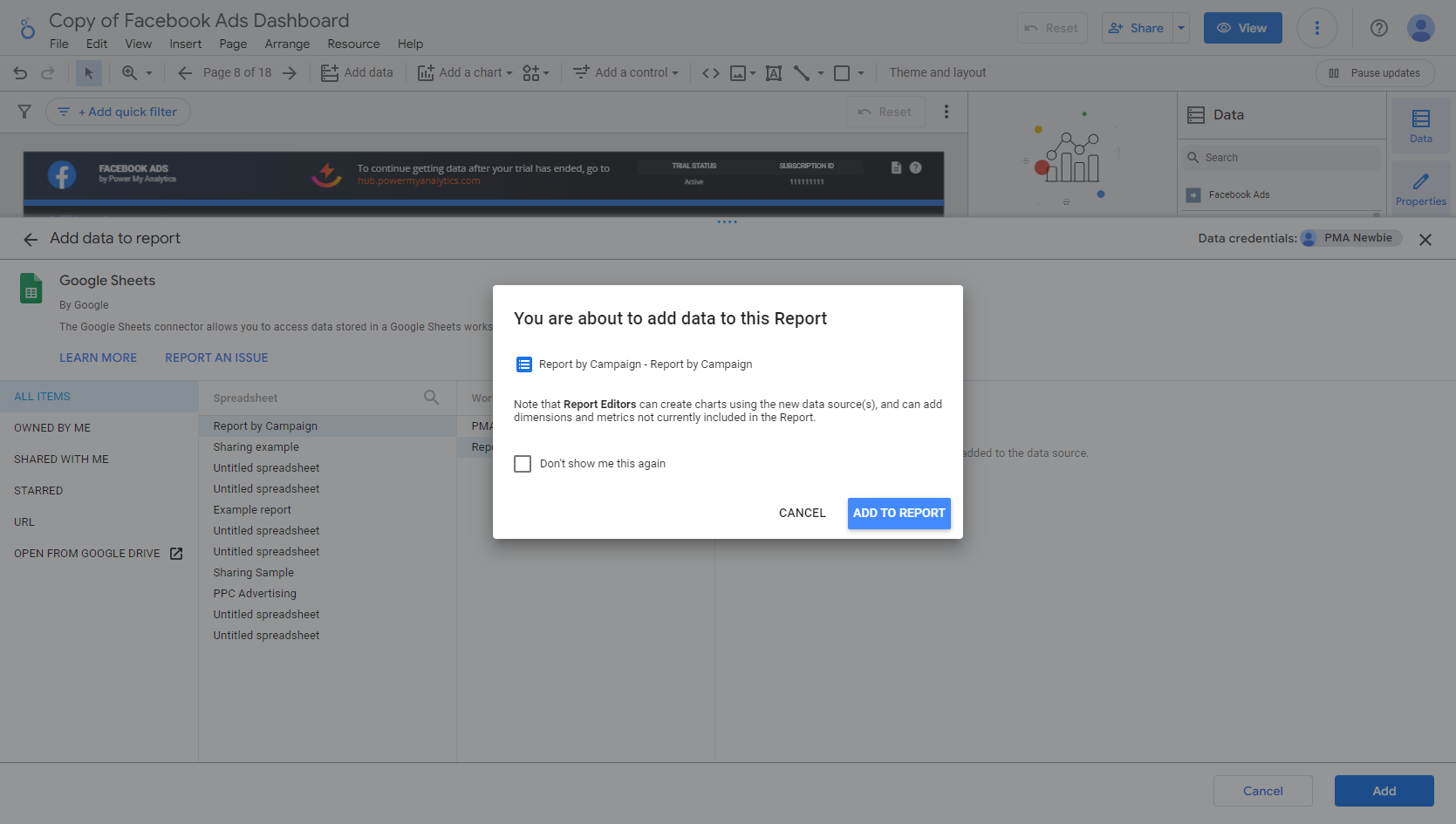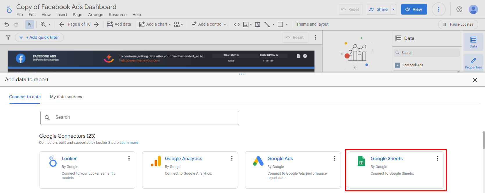 Connect the Sheet to Looker Studio