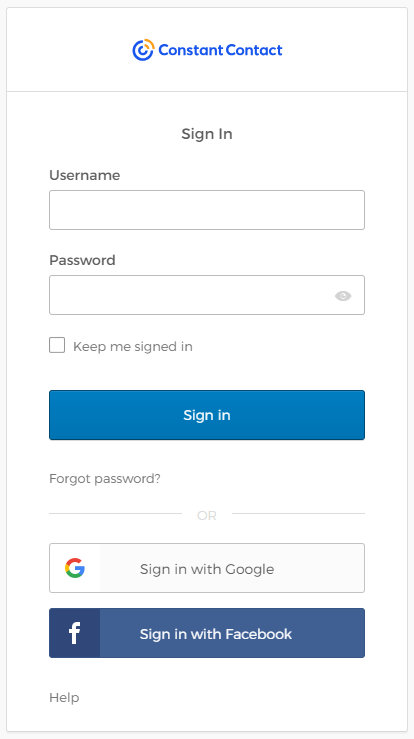 - Enter your Constant Contact account credentials to authenticate and finish adding your Constant Contact account as a data source.