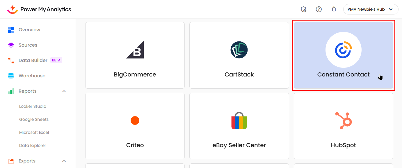 This guide will walk you through connecting your Constant Contact account as a data source in Power My Analytics. By integrating Constant Contact with our platform, you'll be able to automate your data collection, create comprehensive reports, and make data-driven decisions to improve your email marketing performance.