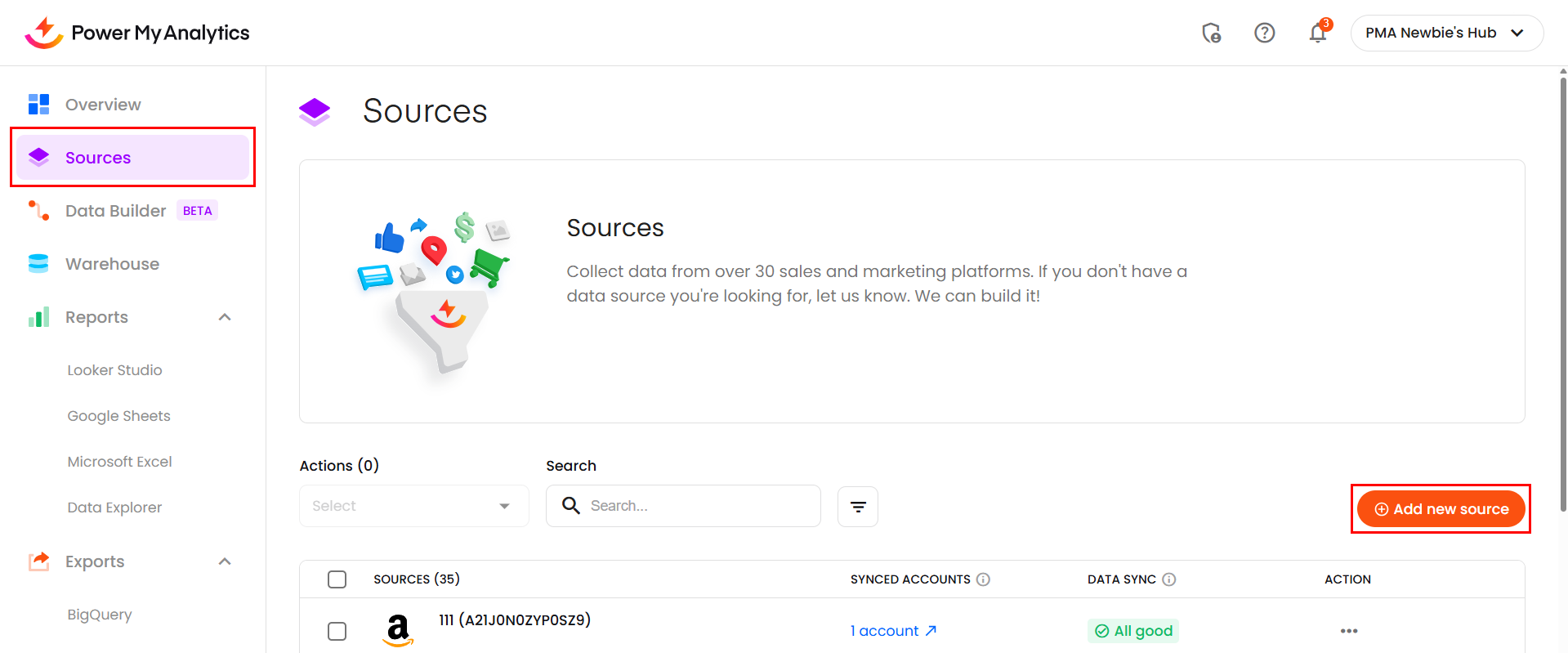 You will be redirected back to Power My Analytics, where your Etsy account will now appear in your Sources list.