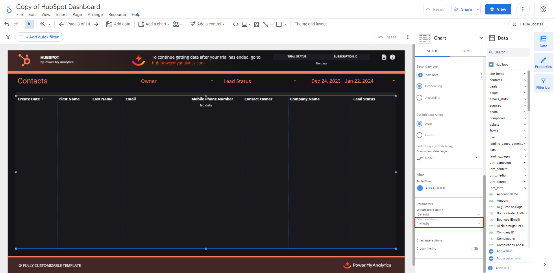 An API limitation in Hubspot makes it impossible to remove deleted deals from your data set. Follow the instructions in this article to learn how to filter out deals that you no longer want in your reports. Looker Studio Select a chart that contains ...