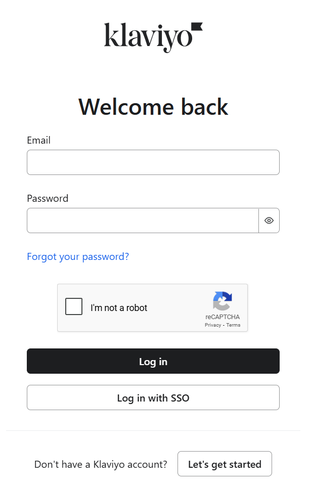 - Log in to your Klaviyo account with email and password or SSO.