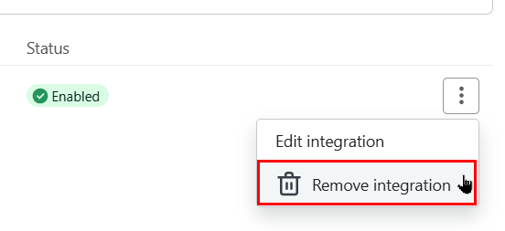 - Finally, click the Remove integration button in the popup to confirm.