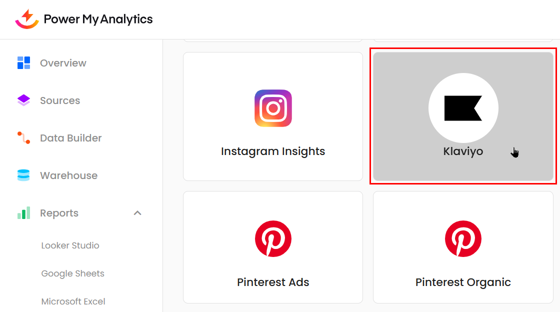 Connecting your Klaviyo account to Power My Analytics allows you to centralize your email marketing data for more efficient reporting and analysis. This guide will walk you through the process of connecting your Klaviyo account to PMA and authorizing access.