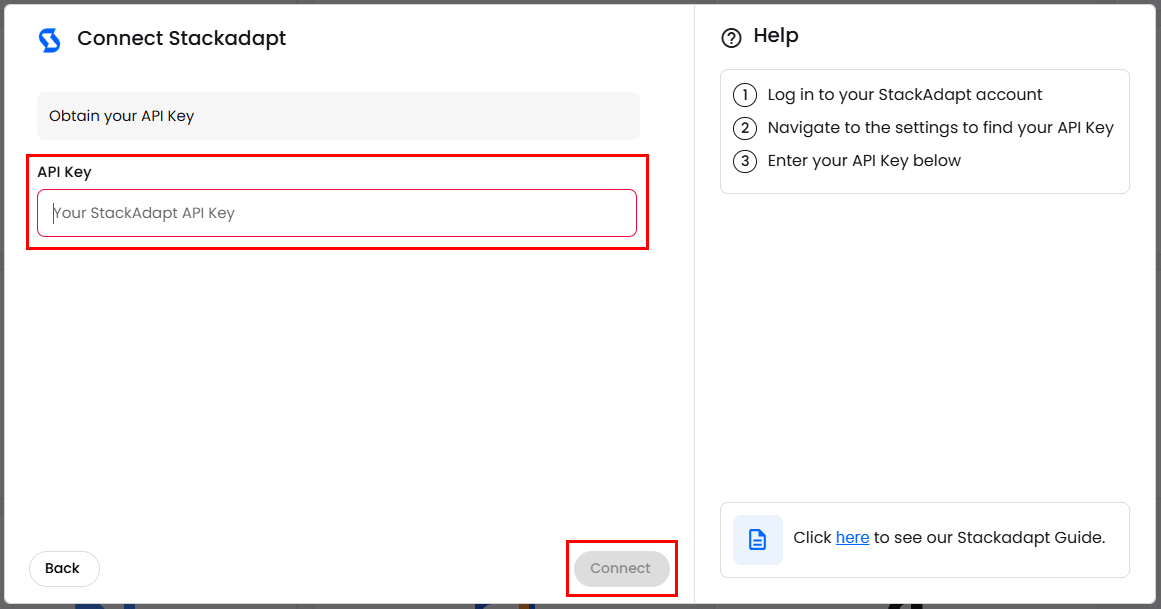 This guide will walk you through setting up your StackAdapt account as a data source, finding your StackAdapt API key, and configuring your data source to begin collecting data.