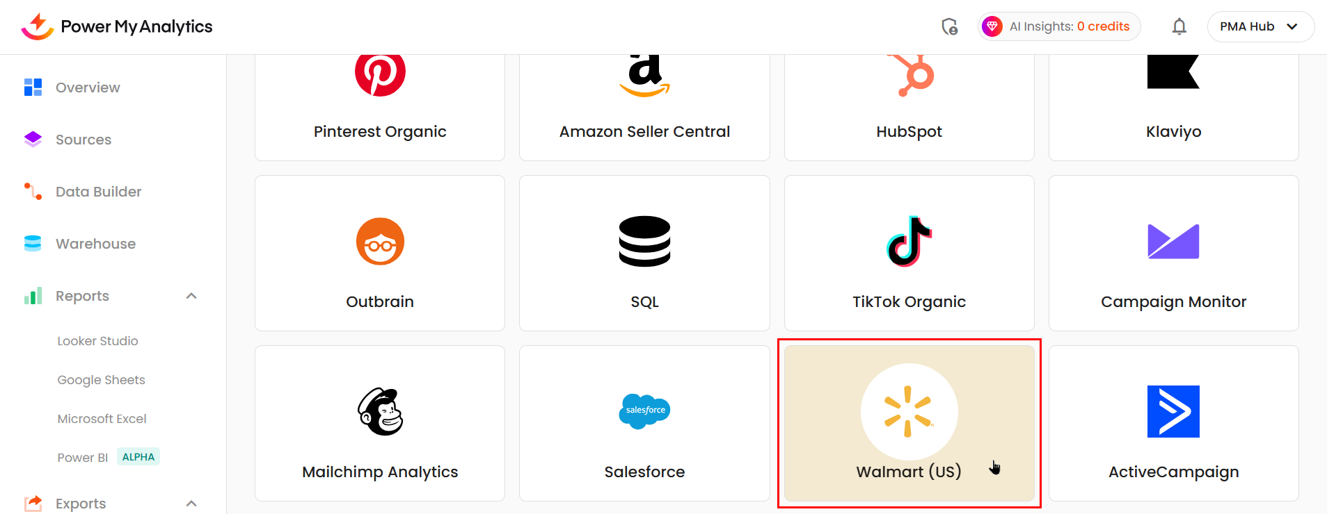 Follow these steps to connect your Walmart Seller Center account to Power My Analytics: