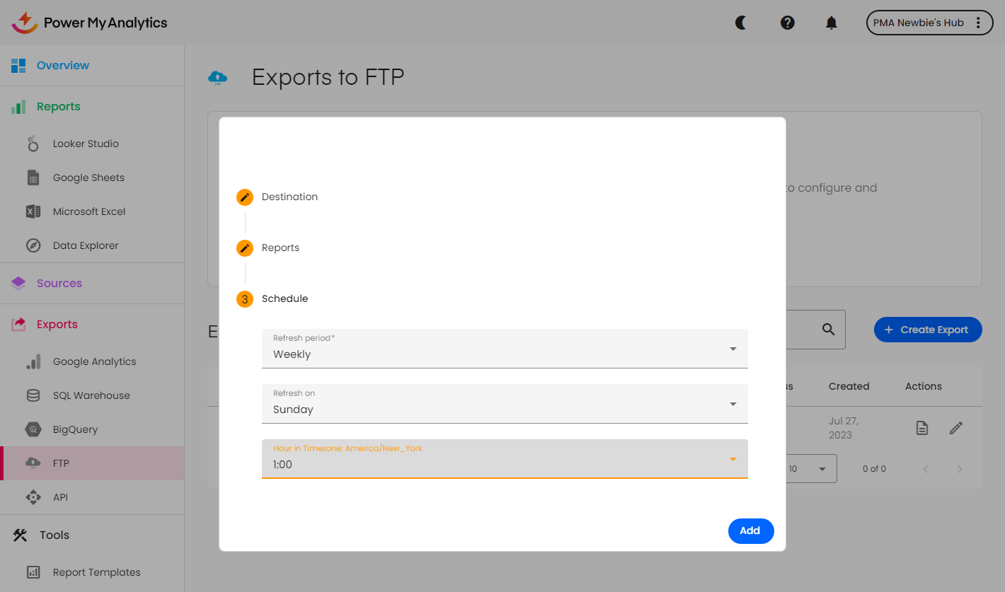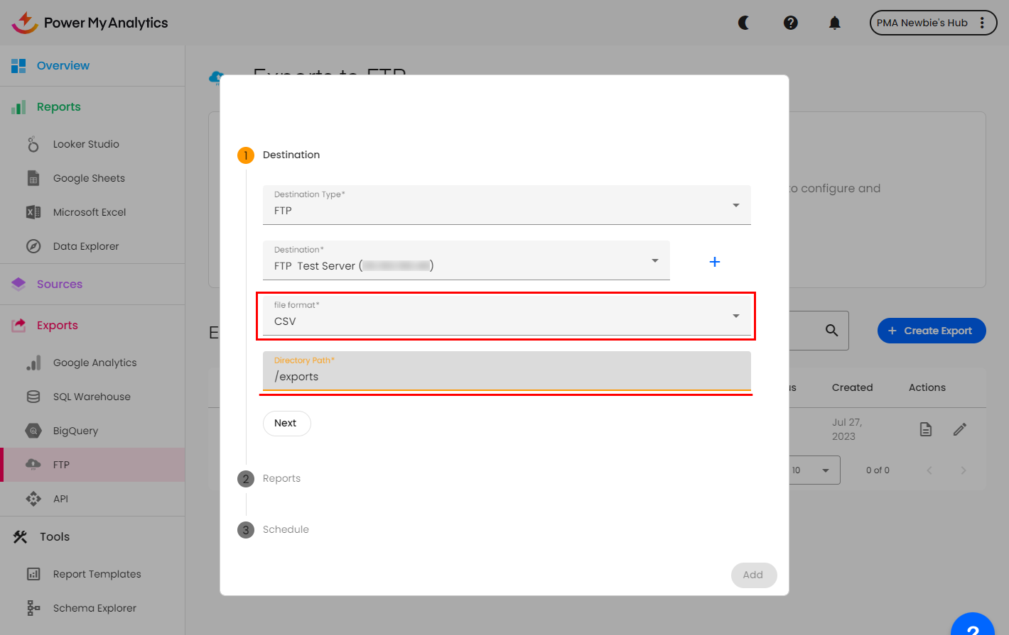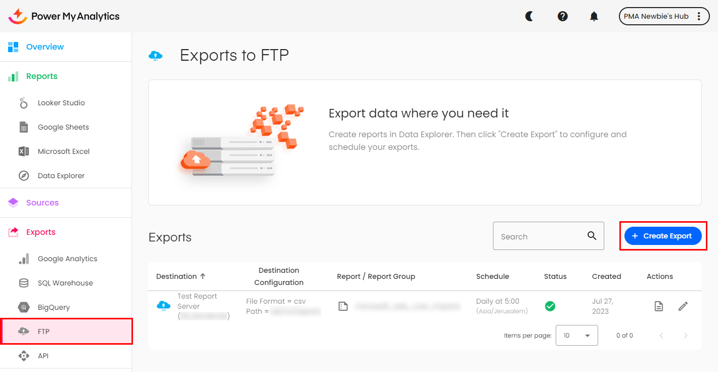 Data Explorer reports. In this article, we will walk you through creating an FTP export, including selecting an FTP destination, scheduling data refreshes, and managing your exports to ensure seamless data transfer.
