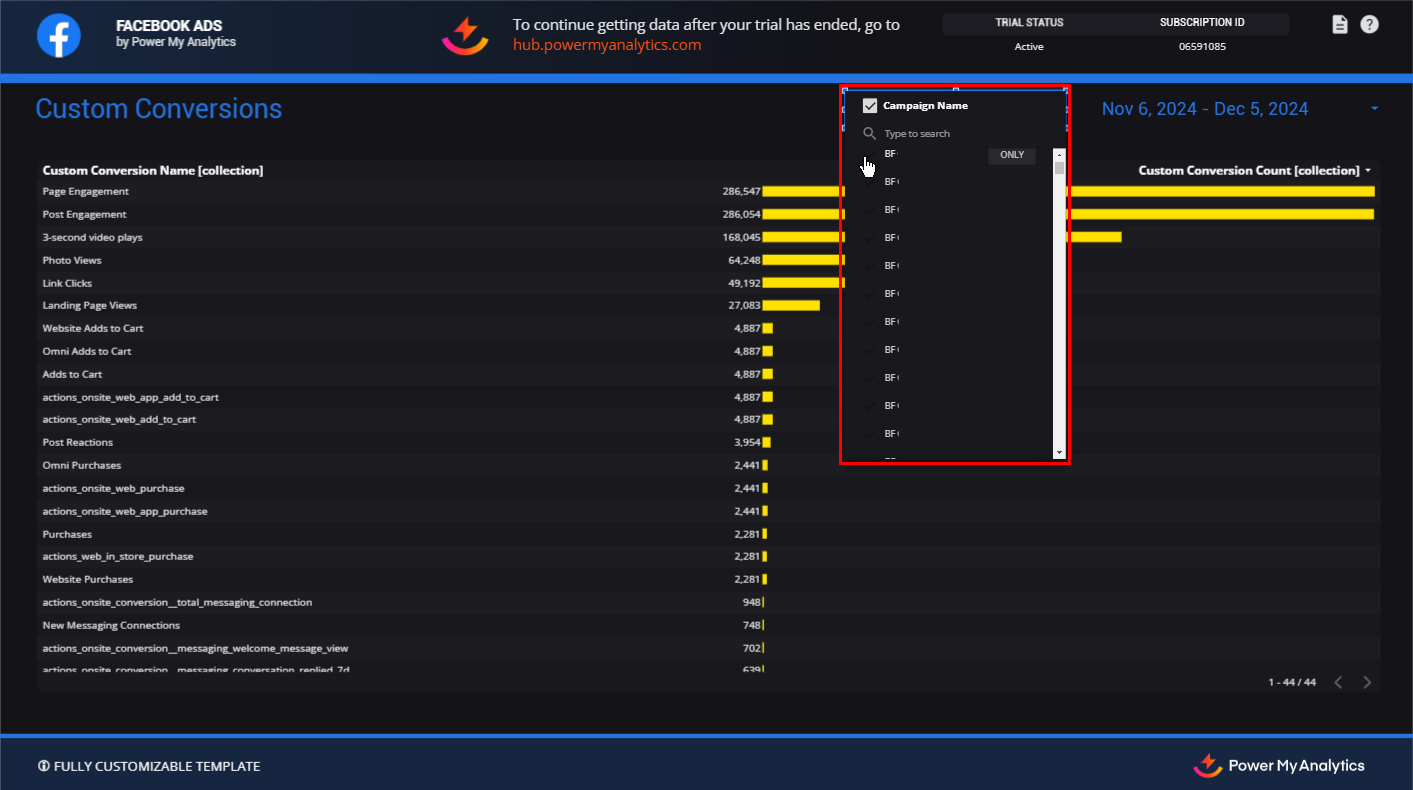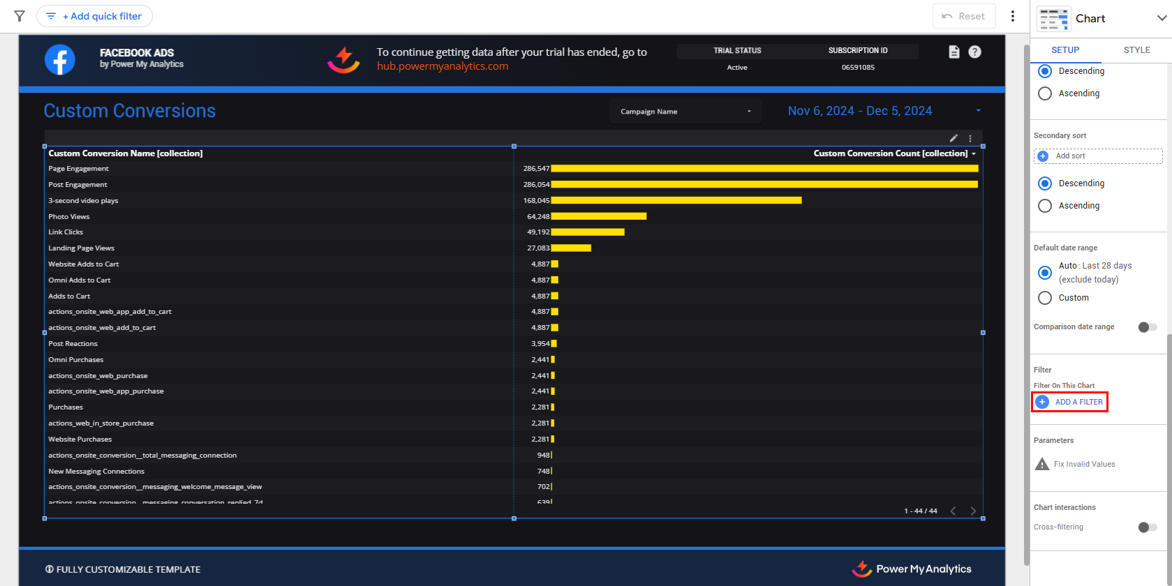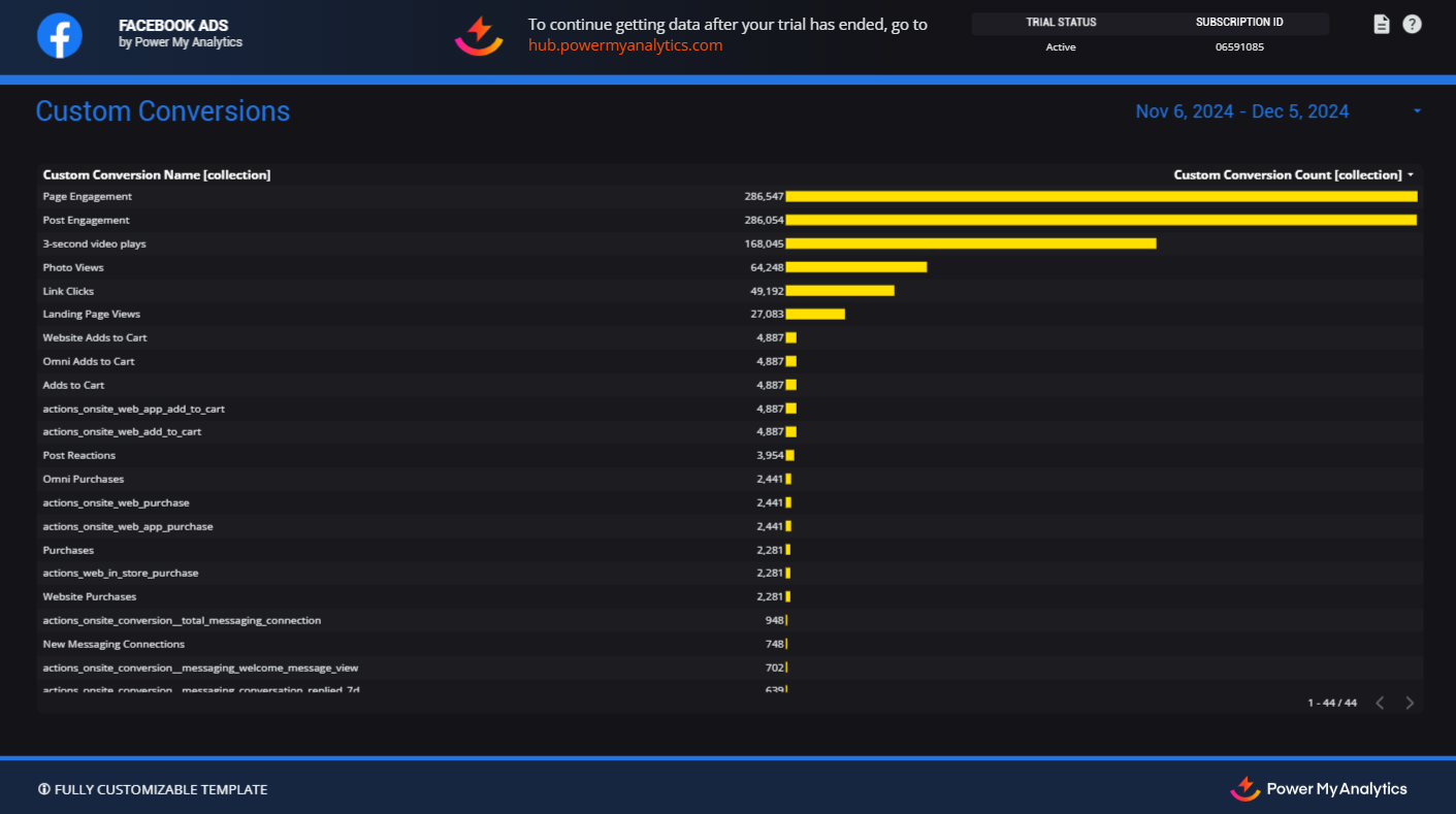 Power My Analytics offers an easy way to include your custom conversions data in your Facebook Ads reports. Follow these steps to get started with reporting custom conversions in Looker Studio.