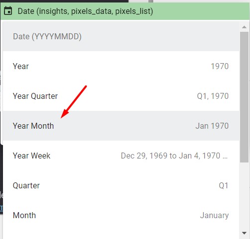 Select a date granularity from the menu: