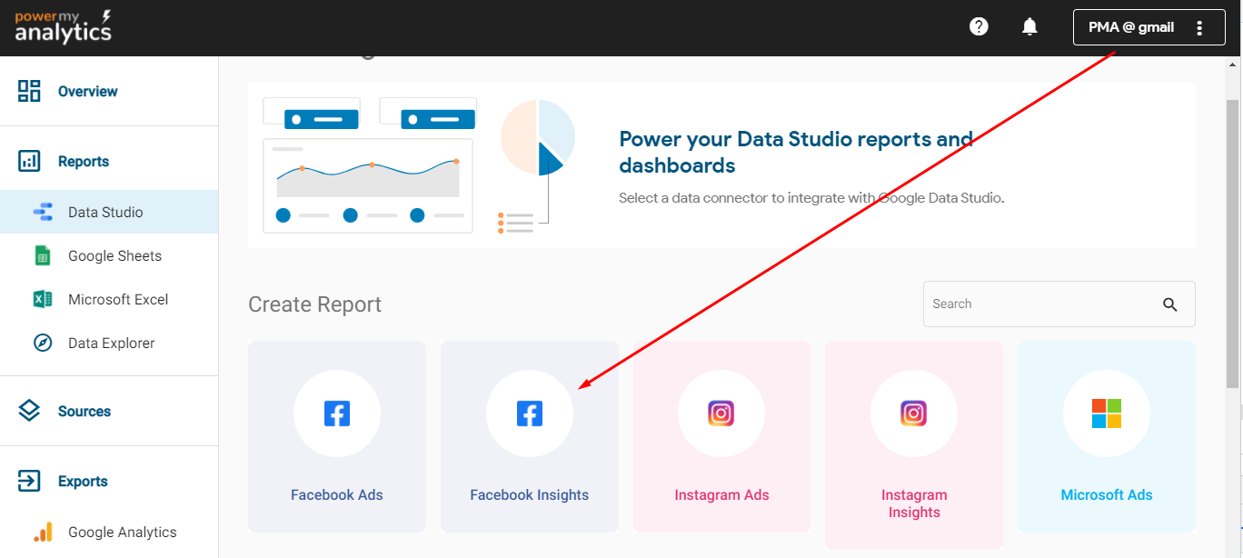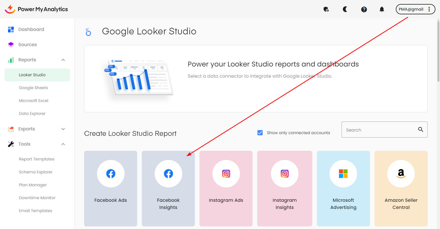 4. Try to create the data source in Looker Studio again. In the example below, I am going to try to connect to Facebook Insights.