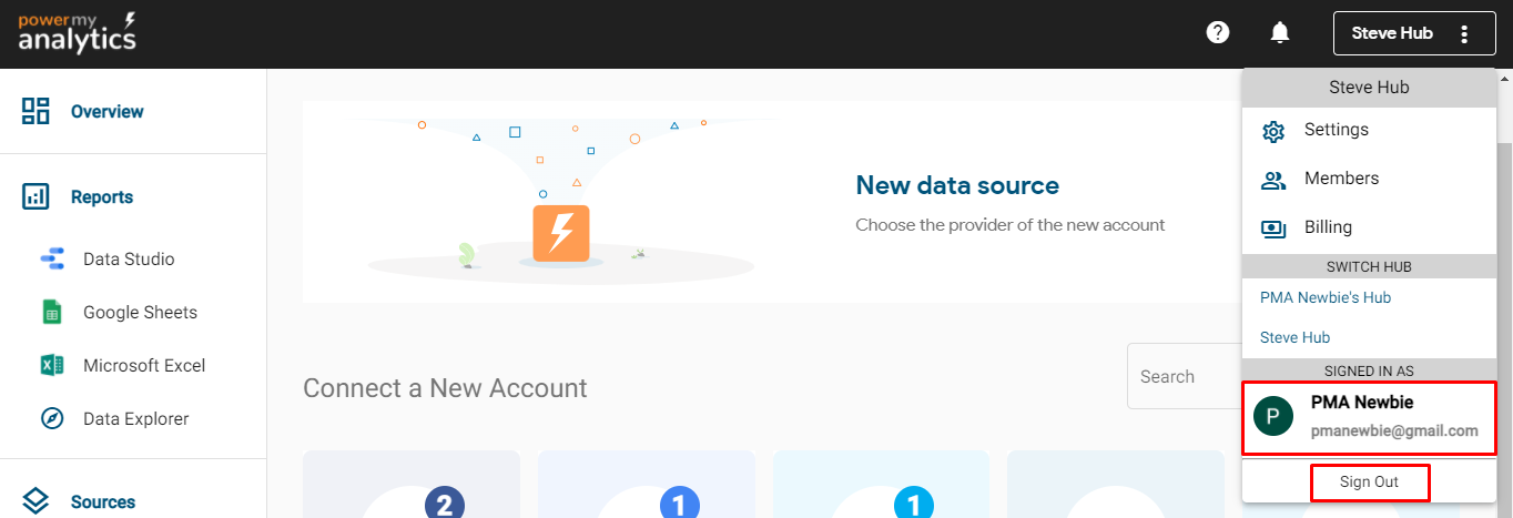 If you are not logged into your Hub with the Google account you want to use, Sign Out and sign back in with the correct email.