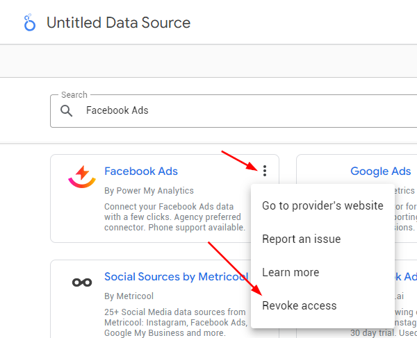 6. Complete the Revoke access step. Then try to create the data source in Looker Studio one more time.