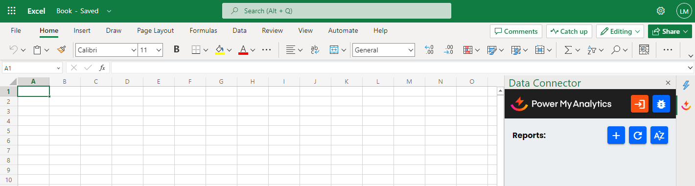 - Log into your Power My Analytics hub. The PMA window will close and the add-in will appear in the Excel sidebar.