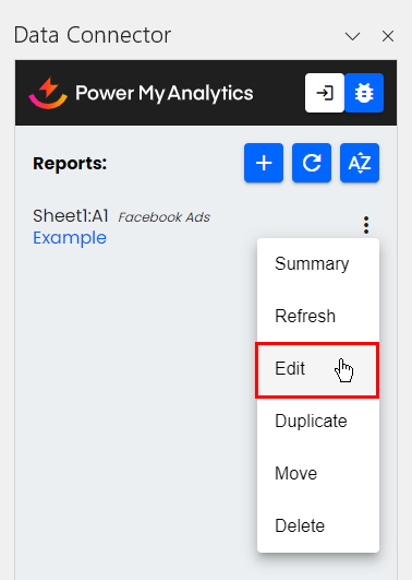 To edit a report, click the three dots menu to the right of the report. Then click Edit.