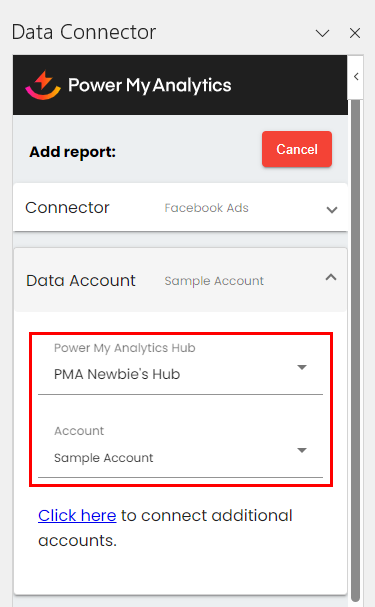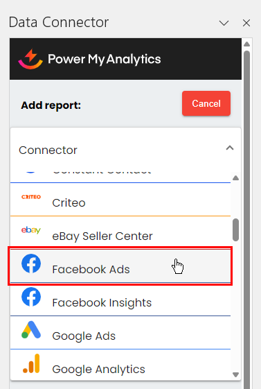 This "account" may be a Business Manager account in Facebook or some other higher-level account than the actual account you will report. The selection of the actual account under a Business Manager account will come in a later step).