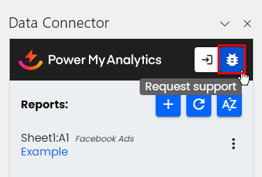 If you have questions or are receiving errors in your report, click the bug icon to request support: