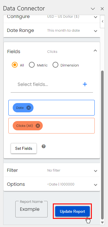 After choosing the fields, you'll have the option to filter the data by a set of conditions.