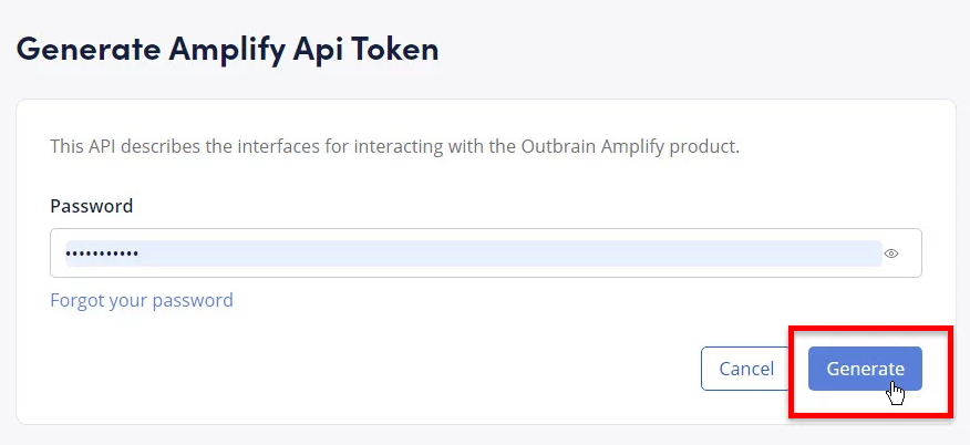 To generate an API token and obtain API access in Outbrain Amplify API: