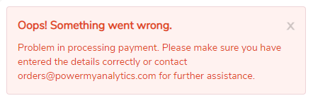 - Occurs: When attempting to make a payment for your Power My Analytics subscription
