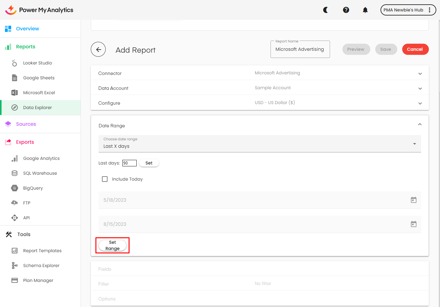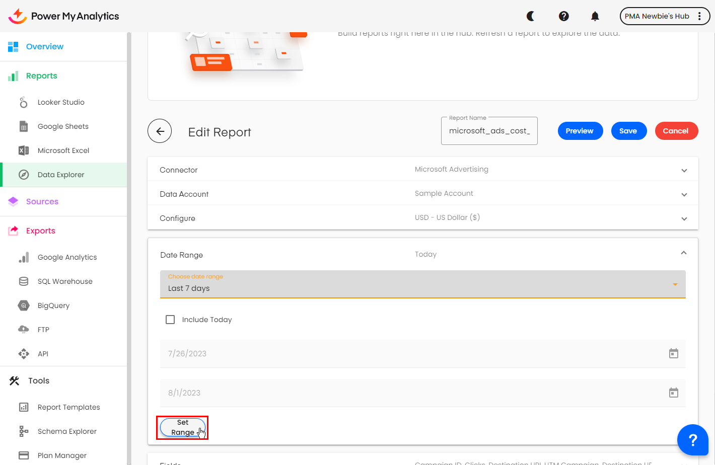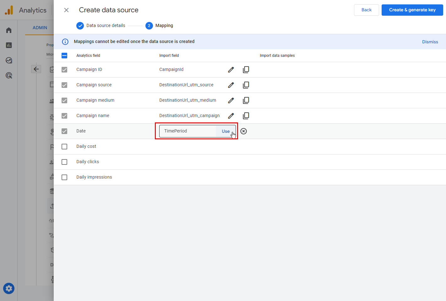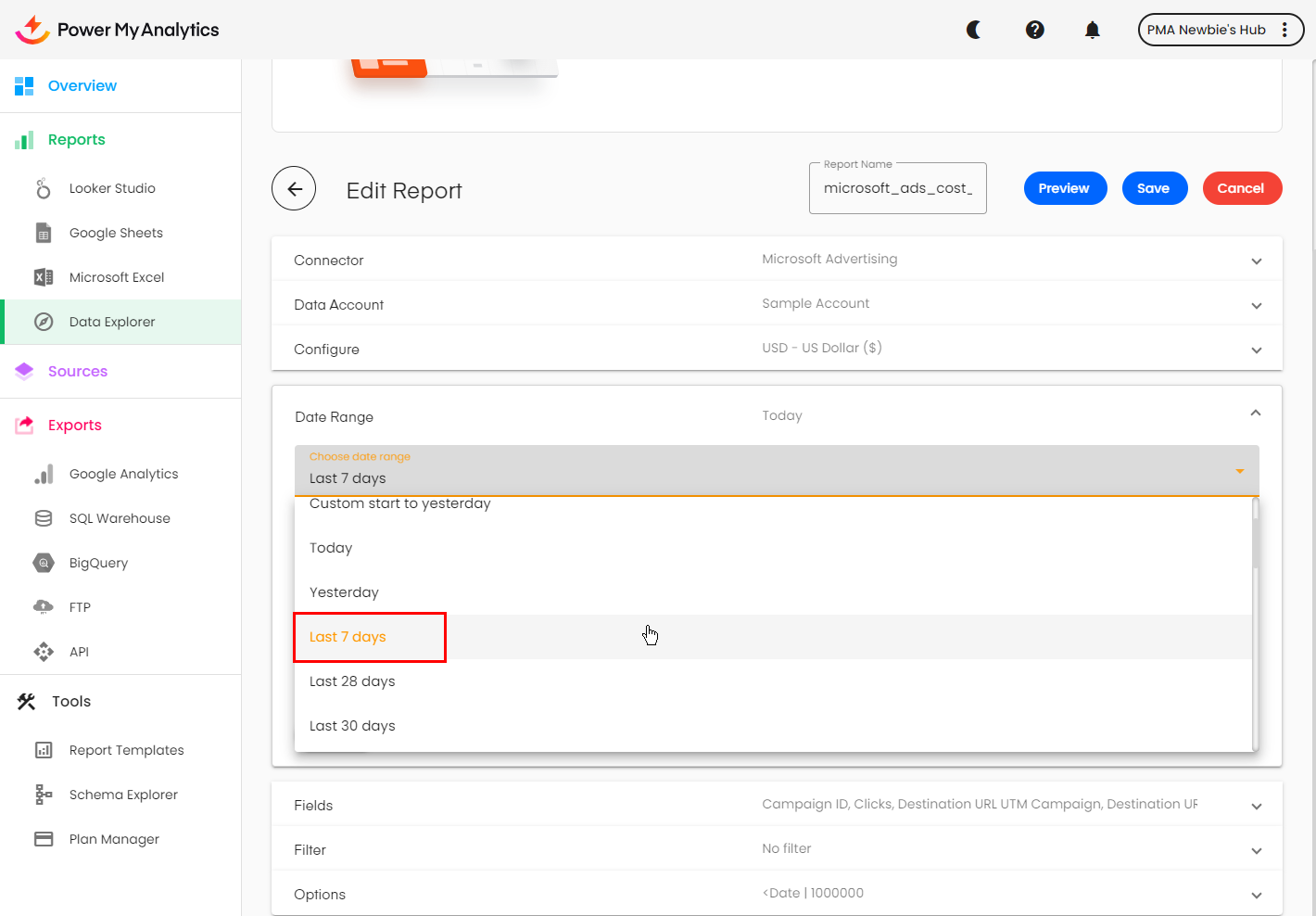 When you’re setting up a report for cost imports, you don’t need to know the exact fields for your connector. PMA will set those up for you in the next step automatically.