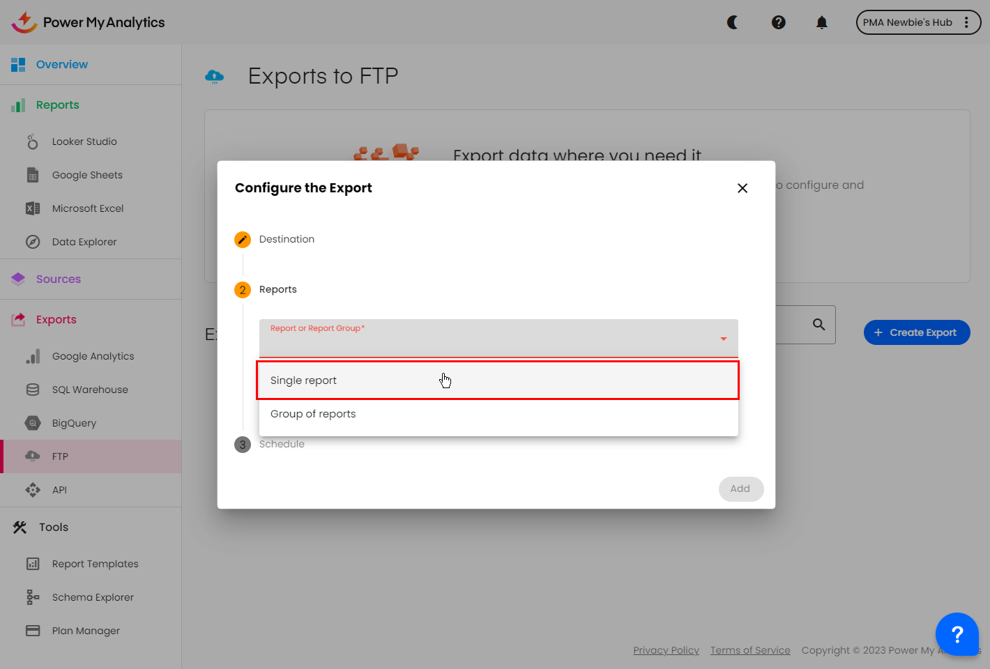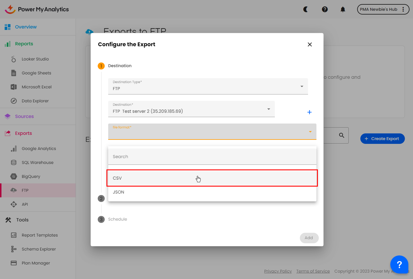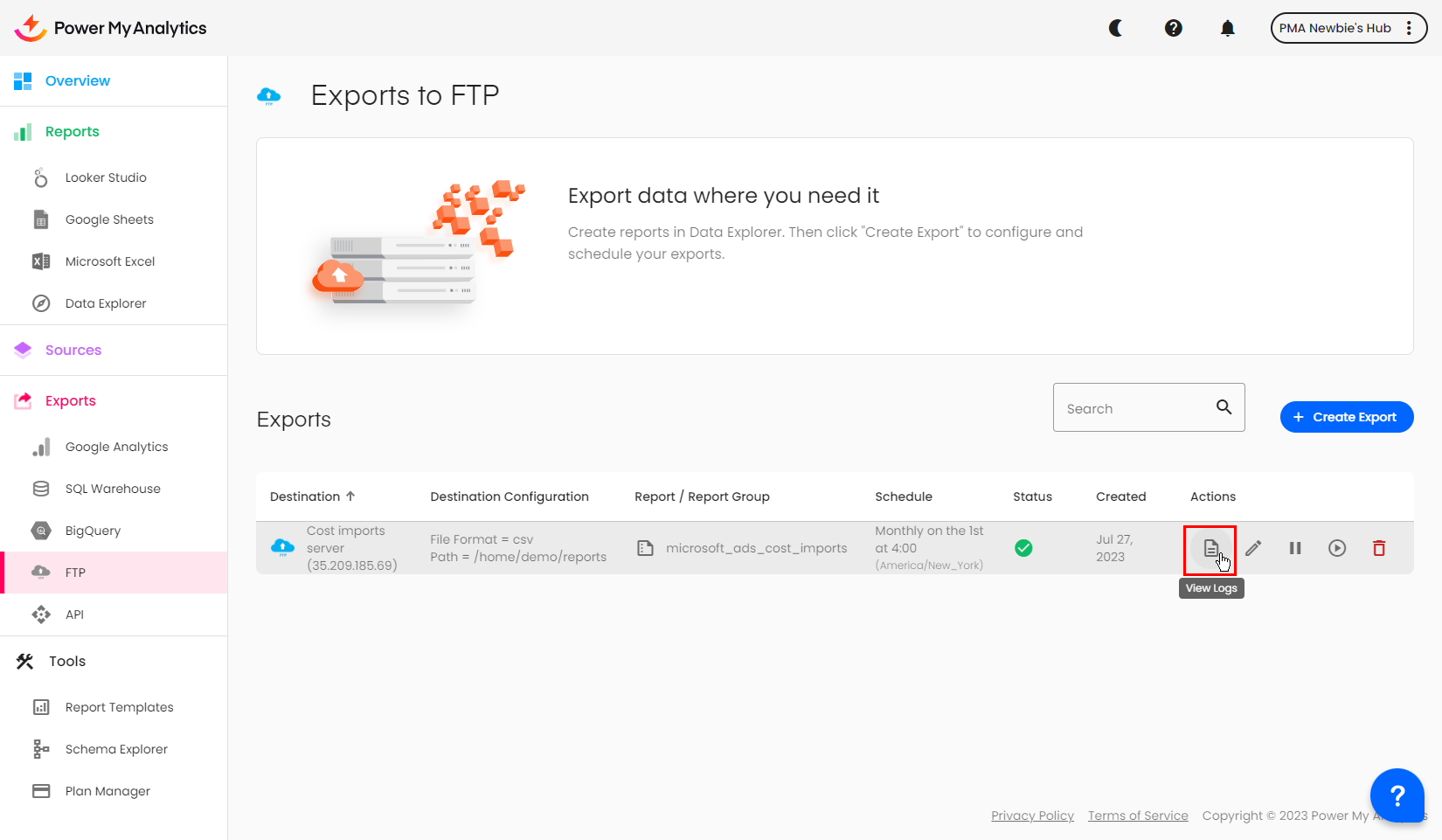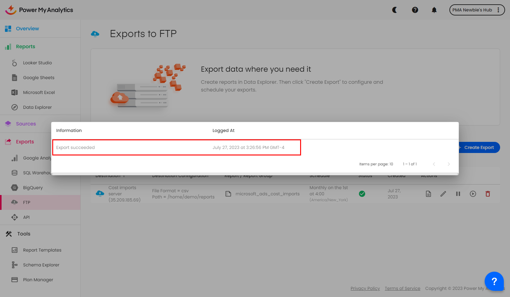 Now that your historical data is imported, you can go back to your Power My Analytics hub and set up a daily refresh of your cost data. This will keep your GA4 cost import data updated every day with new data from your FTP export.