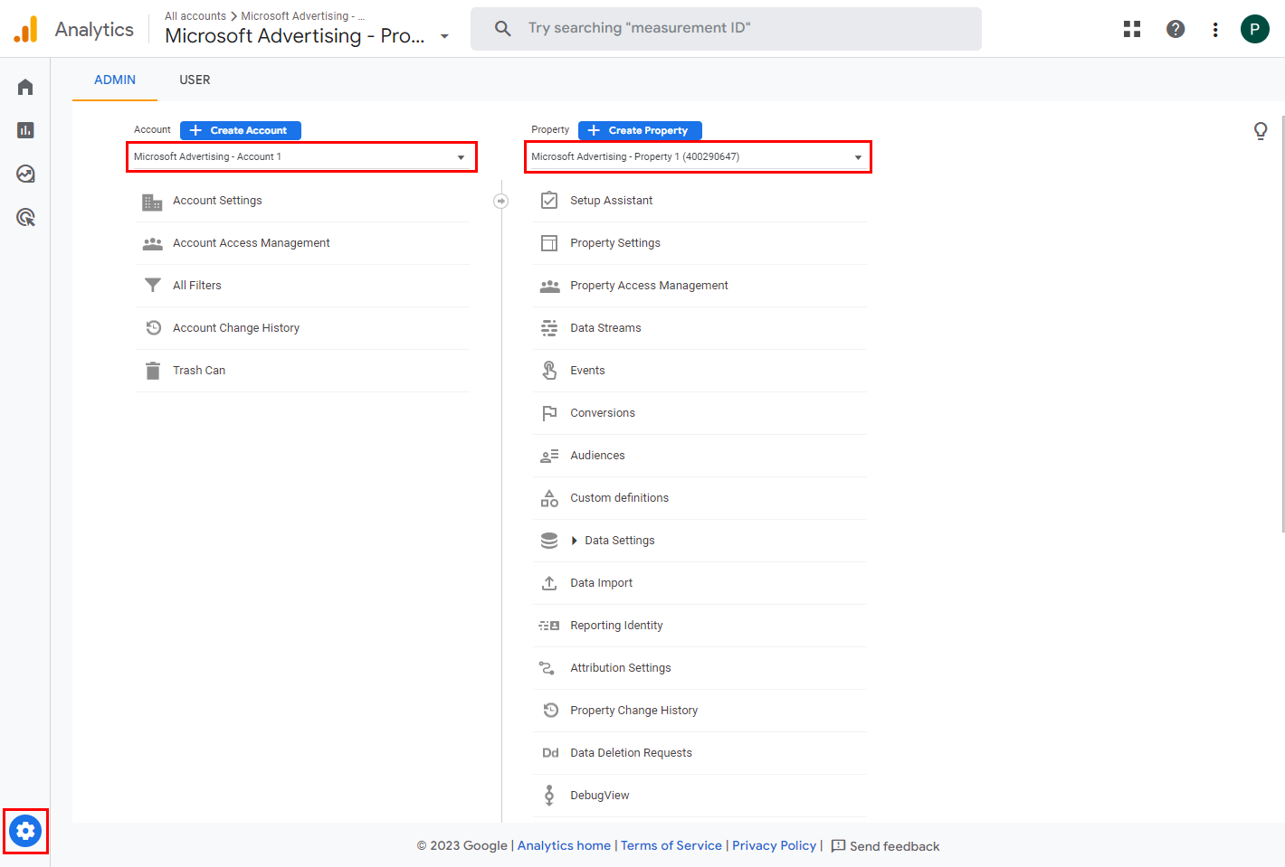 lick on the gear icon in the lower left corner to open your Admin settings and navigate to the property you'd like to use.
