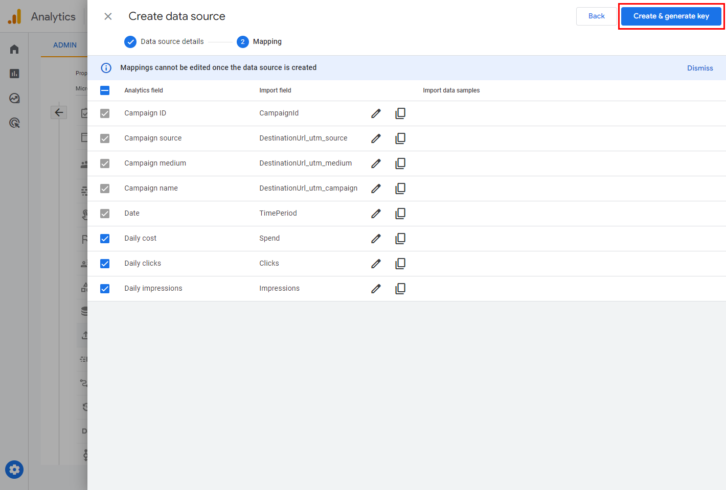 Your cost data report is created, and all of your metrics and dimensions for GA4 will be populated and configured automatically according to the connector you've chosen.