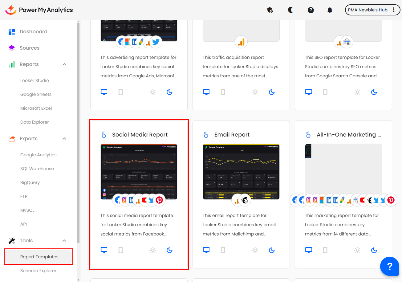 In your hub, go to Tools > Report Templates and select Social Media Report.