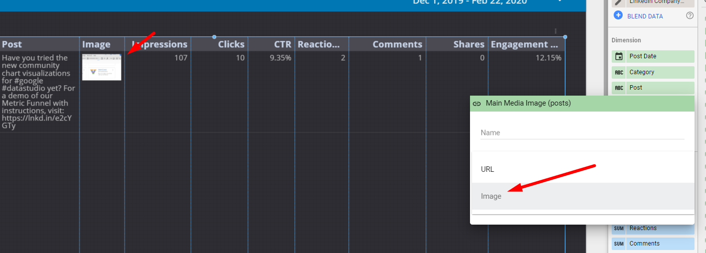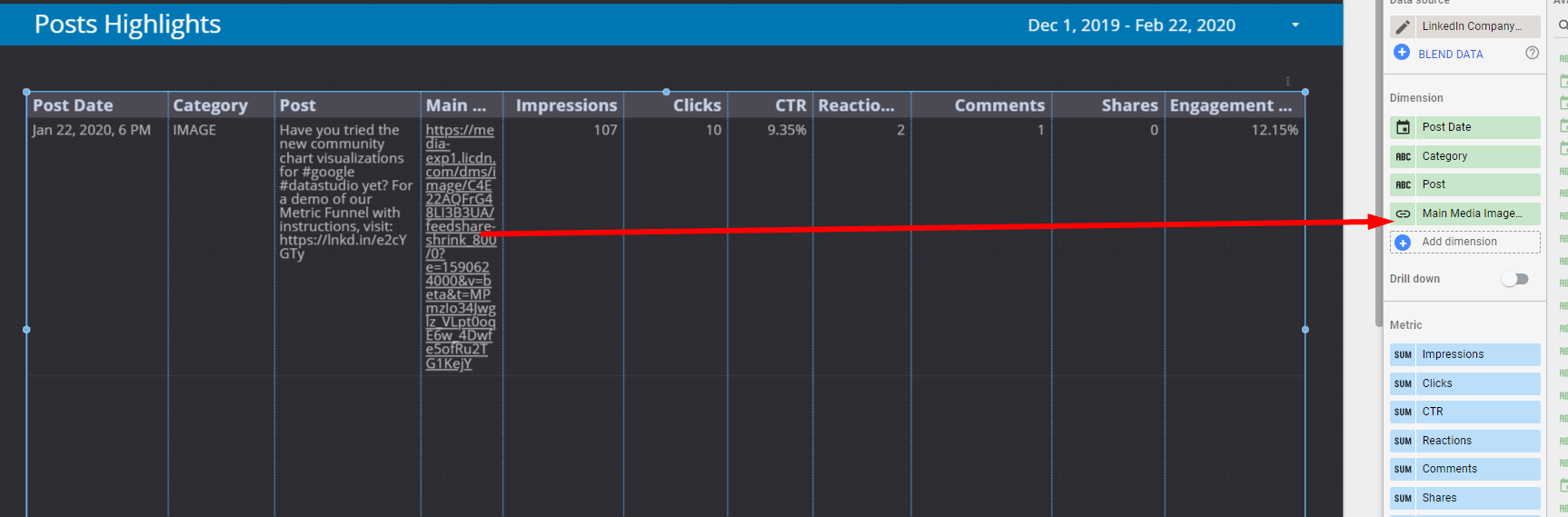 If you create a report in Looker Studio and an image field shows up as a link instead of a graphic, follow these steps to update the field to a graphic.