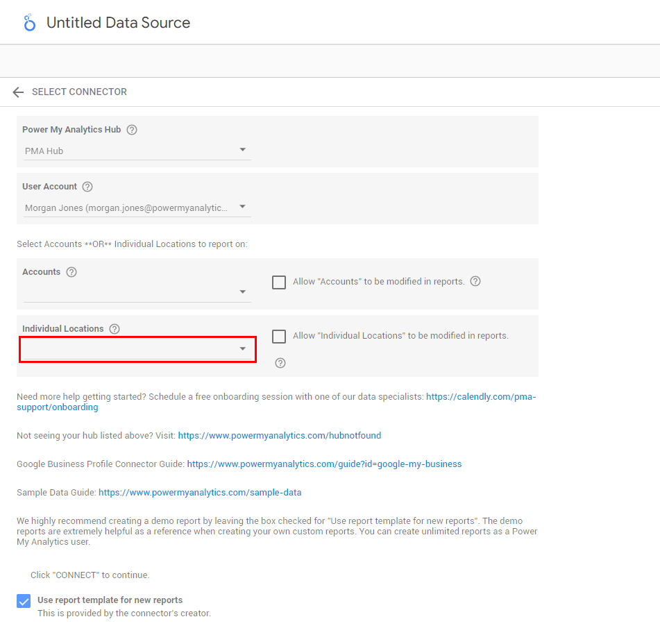 A Business Location in Google Business Profile refers to each brick-and-mortar office or storefront location at which a business operates. Google Business Profile tracks separate analytics for each Business Location and Power My Analytics bills Google Business Profile by the number of locations connected. When you create a report with Google Business Profile, our connectors will ask you to select one or many locations.