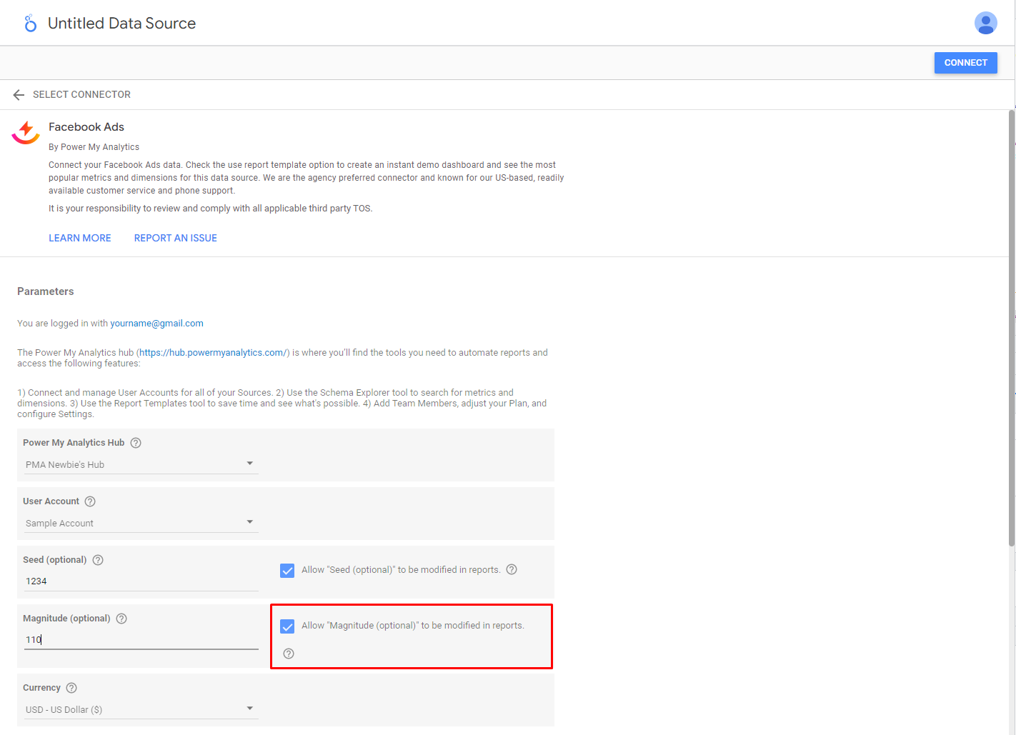 When utilizing Sample Data in Power My Analytics, users often inquire about the 'Magnitude' parameter. Magnitude is an optional field users can adjust to increase or decrease the size of the Sample Data set.