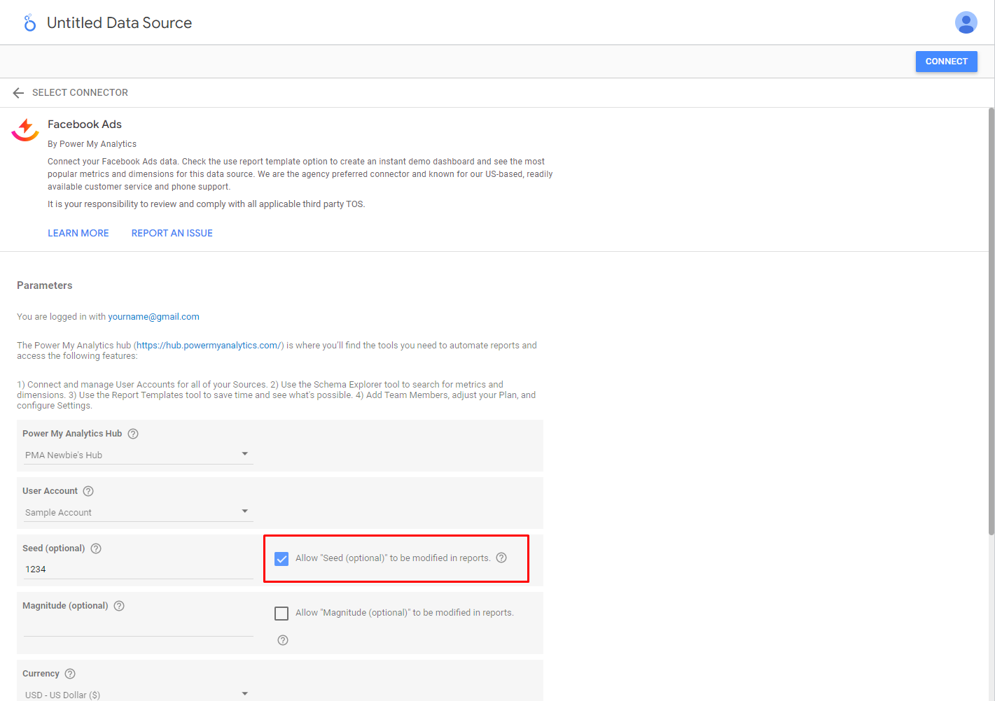 When using Sample Data in Power My Analytics, one frequently asked question is about the 'Seed' value. 'Seed' is an optional parameter users can enter to generate a consistent set of Sample Data.