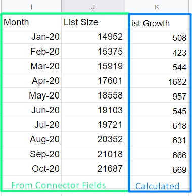 and you can then report true list growth, the import into Looker Studio into a graph: