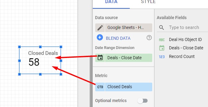 Then connect to Looker Studio and set up as follows to report total closed deals by deal close date: